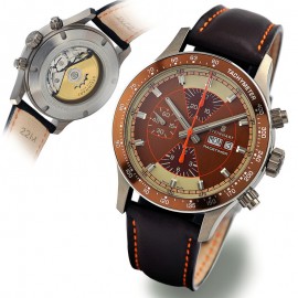 MOVEMENTETA Valjoux 7750 Elaboré Swiss made automatic 25 Jewels day date at "3" golden Rotor with Logo hour and minute silver, with superluminova BGW 9Stop-Second hand orangescrewed-down crown and pusherFUNCTIONSCASETitan satinedDiameter 44 mmHeight 16 mmWeight 118gLug width 22 mm spring barSapphire glass domed, w..